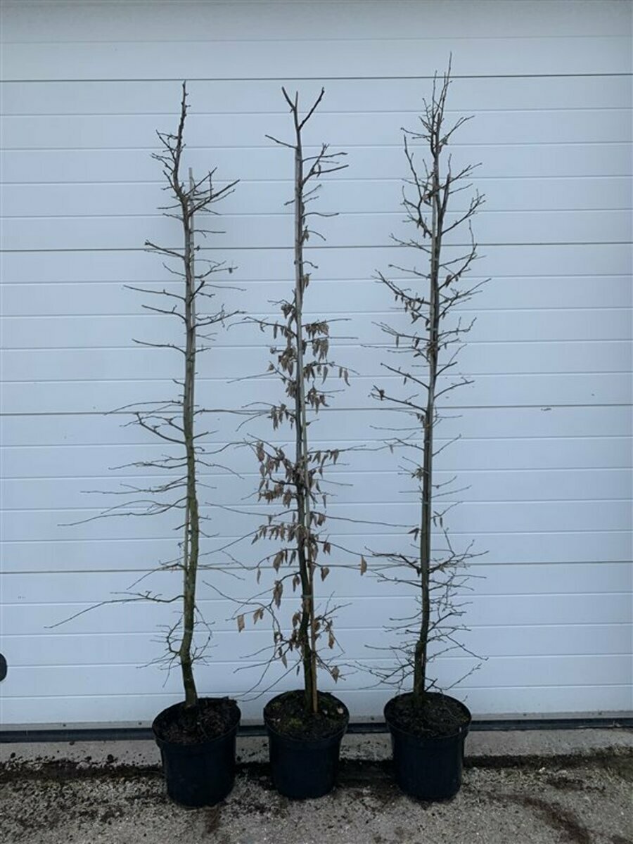 Betekend dat het een leiboom is, met een stamomtrek van 16-18 cm, een stamhoogte van 2.00 m (vanaf bovenkant pot tot het leirek) en in een pot staat